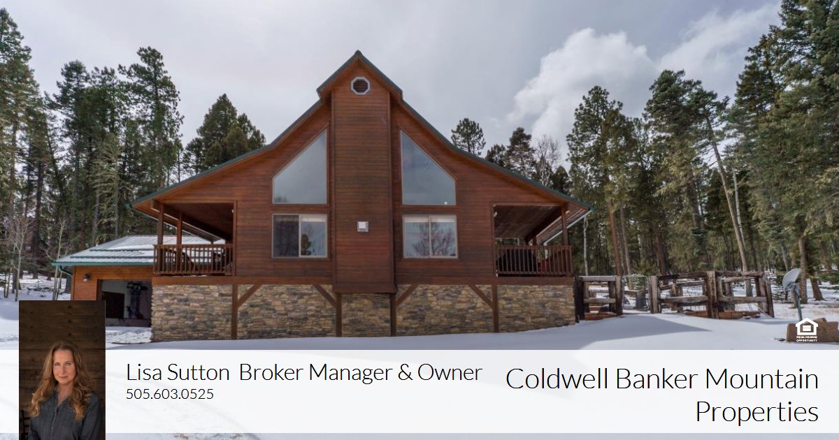 This beautiful mountain home sits perched on three combined lots. The large living room features great views, plenty of natural light, vaulted ceilings, and a cozy southwest-style fireplace. Open living concept with a designated dining area offering plenty of seating, plus glass doors leading to a covered deck. Outside, you will find a fenced yard with a firepit and room for pets. Surrounded by dense forest the outdoor spaces are perfect for viewing wildlife. Enjoy a well-equipped kitchen with custom cabinetry, suitable counter space and ample storage. Upgrades and improvements include new central heating, new roof, new flooring, new lighting, newer septic system, and new furniture. Bonus features include fiber-optic internet, a separate laundry room and a spacious garage with a separate storage area. Angel Fire Ski Resort, a PGA rated golf-course and a trout-stocked lake are just minutes away as well as other resort amenities included in your resort membership package.